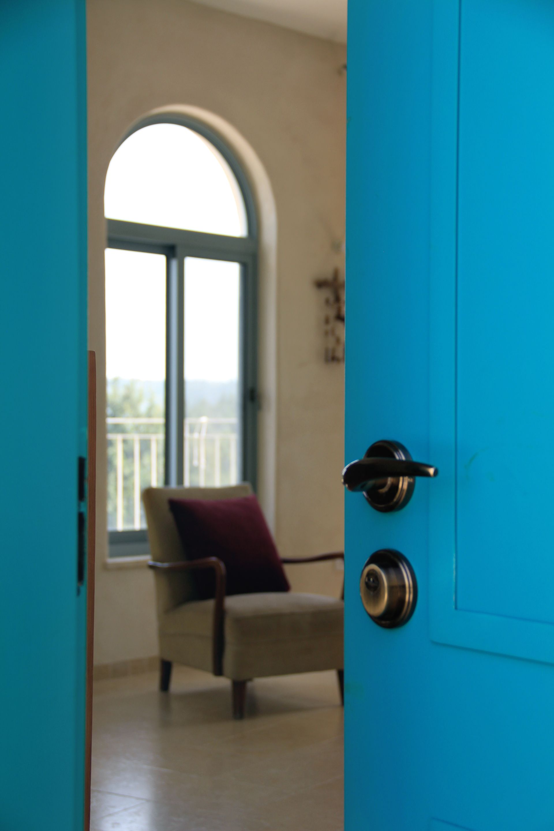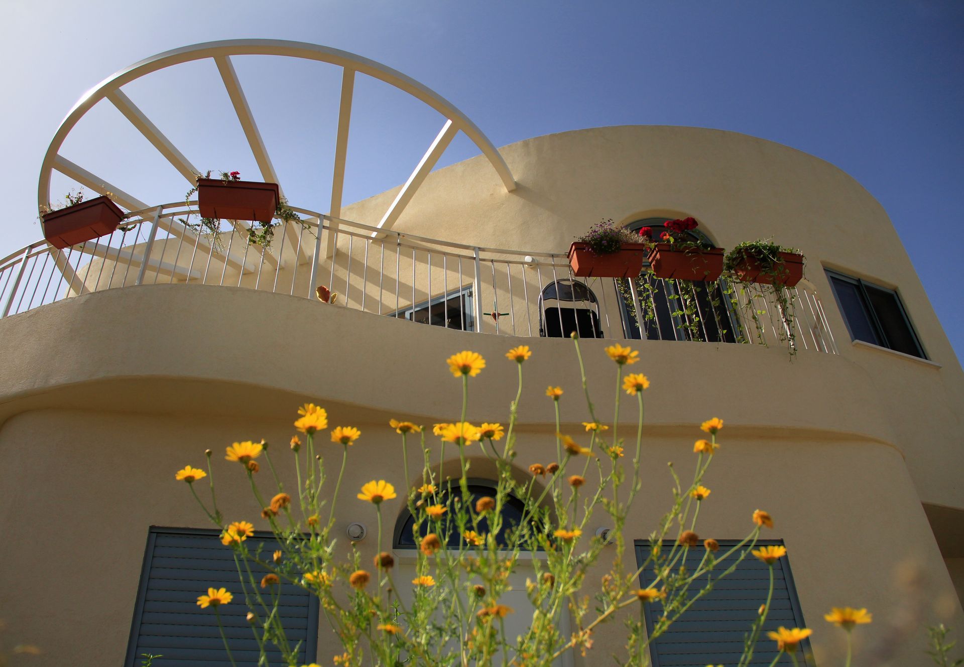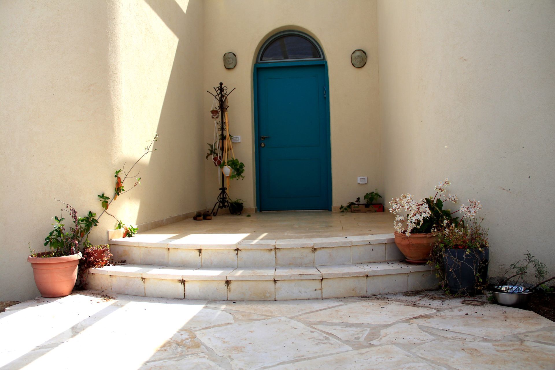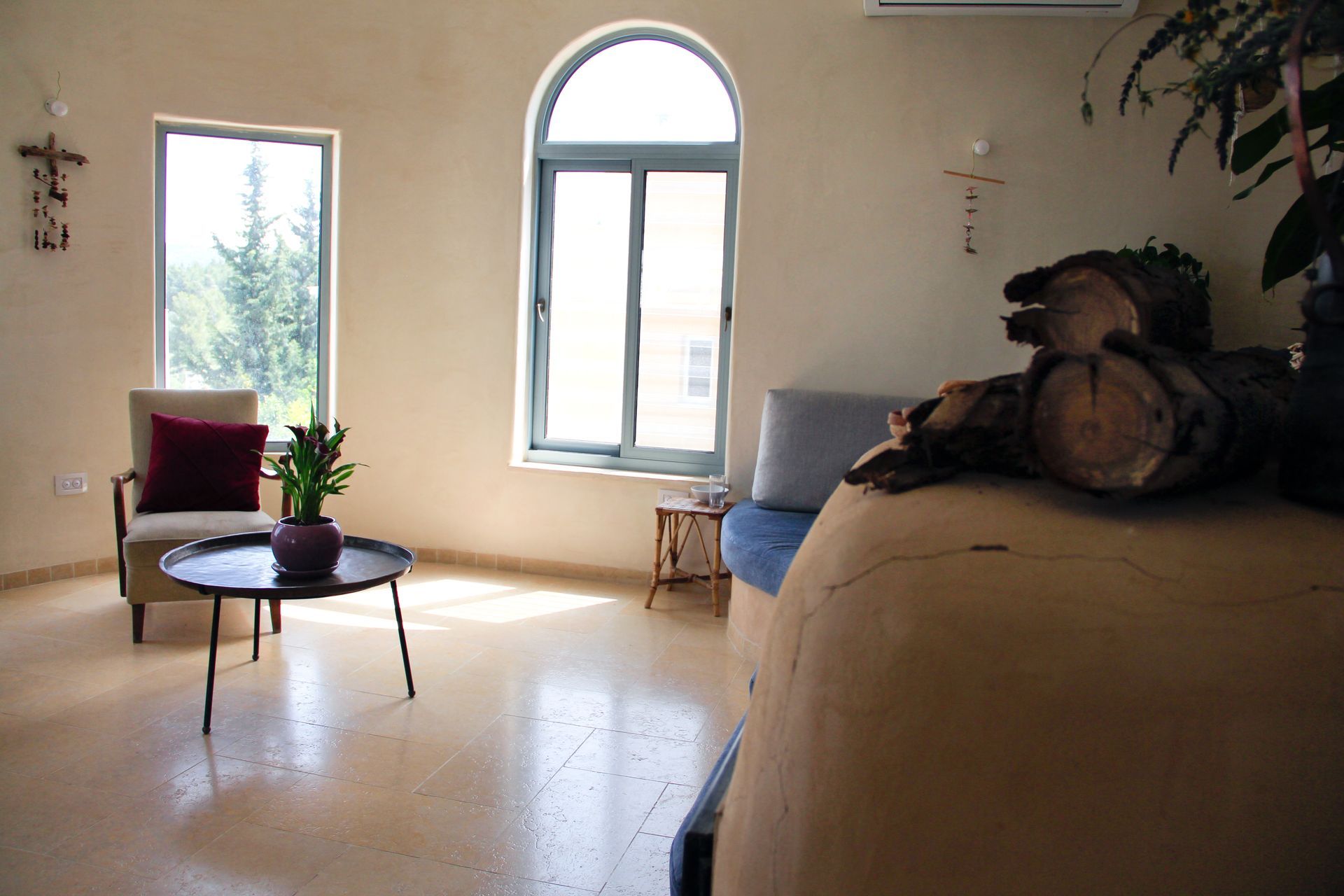 הבית הינו בשני מפלסים משתלב בשיפוע הקרקע ומשלב חדרים בבניה אורטוגונלית וסלון עם חזית של קיו מתעגל המאפשר פתיחה אל הנוף מכמה זויות ומוסיף רכות למרחב החלל המשותף של הסלון.